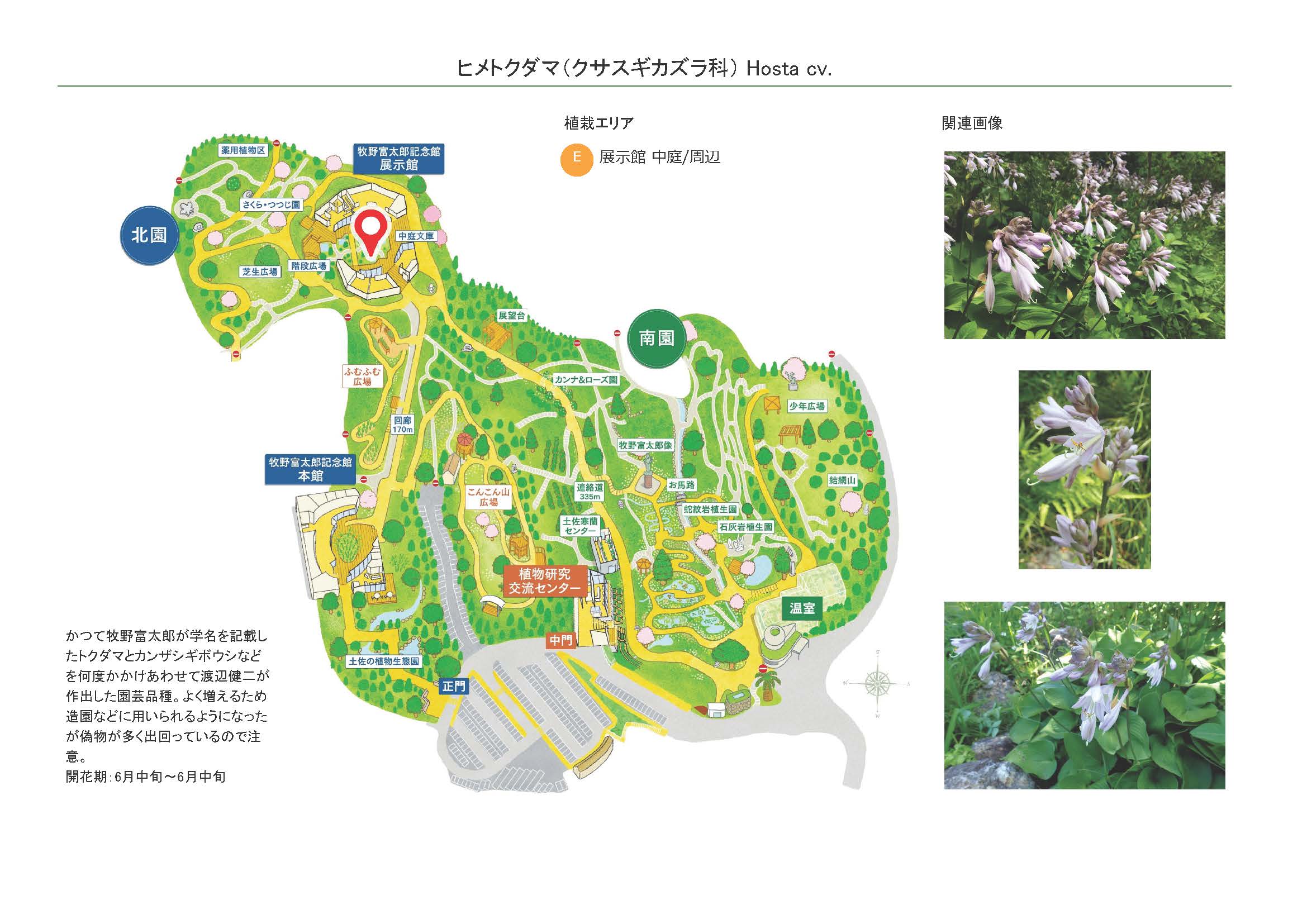 2025-02-27 / 最終更新日 : 2025-09-19 牧野植物園広報課管理 ヒメトクダマ(クサスギカズラ科) 種名ヒメトクダマ 科名クサスギカズラ科 別名- 学名Hosta cv. 摘要 かつて牧野富太郎が学名を記載したトクダマとカンザシギボウシなどを何度かかけあわせて渡辺健二が作出した園芸品種。よく増えるため造園などに用いられるようになったが偽物が多く出回っているので注意。 さらに詳しく① さらに詳しく② 植栽エリア E展示館 中庭/周辺 開花期 6月中旬〜6月中旬 見ごろ 博士ゆかり 植物図 同じ科名の園内植物 アマドコロ オニツルボ カンザシギボウシ キチジョウソウ コヤブラン スダレギボウシ ツボミギボウシ ツルボ さらに表示