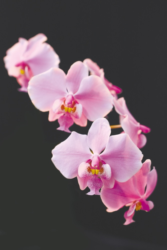 フィリピンの海抜 0~450mに自生します。香りのある花は淡桃色で花もちがよく、花茎は90cm以上になって、よく分枝して花を30~50輪以上、250輪もつけることから、ピンク系の交配によく用いられる。 |