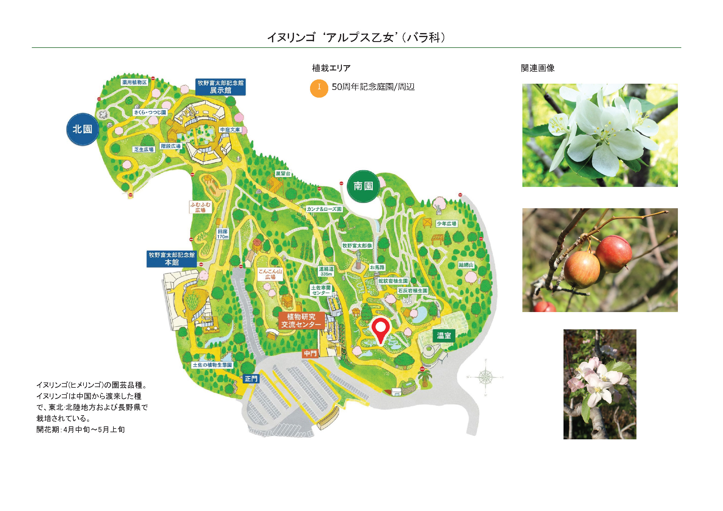 2025-11-22 / 最終更新日 : 2025-12-04 広報課 イヌリンゴ ‘アルプス乙女’(バラ科) 花は白色で径3.5‐5cmほどの大きさ 果実は球形で赤く熟したものは食べられる 花は白色で径3.5‐5cmほどの大きさ 種名イヌリンゴ ‘アルプス乙女’ 科名バラ科 別名ヒメリンゴ 学名Malus prunifolia (Willd.) Borkh. ‘Alpus-otome’ 摘要 イヌリンゴ(ヒメリンゴ)の園芸品種。イヌリンゴは中国から渡来した種で、東北·北陸地方および長野県で栽培されている。 さらに詳しく① さらに詳しく② 植栽エリア I50周年記念庭園/周辺 開花期 4月中旬〜5月上旬 見ごろ ○ 博士ゆかり 植物図 同じ科名の園内植物 アメリカザイフリボク アンズ イザヨイバラ イワガサ ウメ ウメ‘呉服枝垂' ウメ‘鹿児島紅’ エドヒガン さらに表示