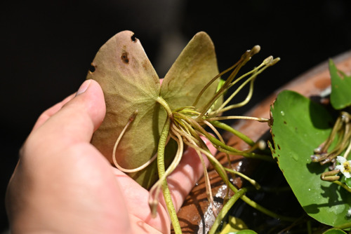 摘要 本州~九州、朝鮮半島、中国、東南アジア、アフリカ、オーストラリアに分布する多年生の水生植物。葉身は広楕円形または卵状円形で径4~20cm、基部は深い心形で全縁。花は白色で径約1.5cm、裂片の内面と縁に長毛が密生する。