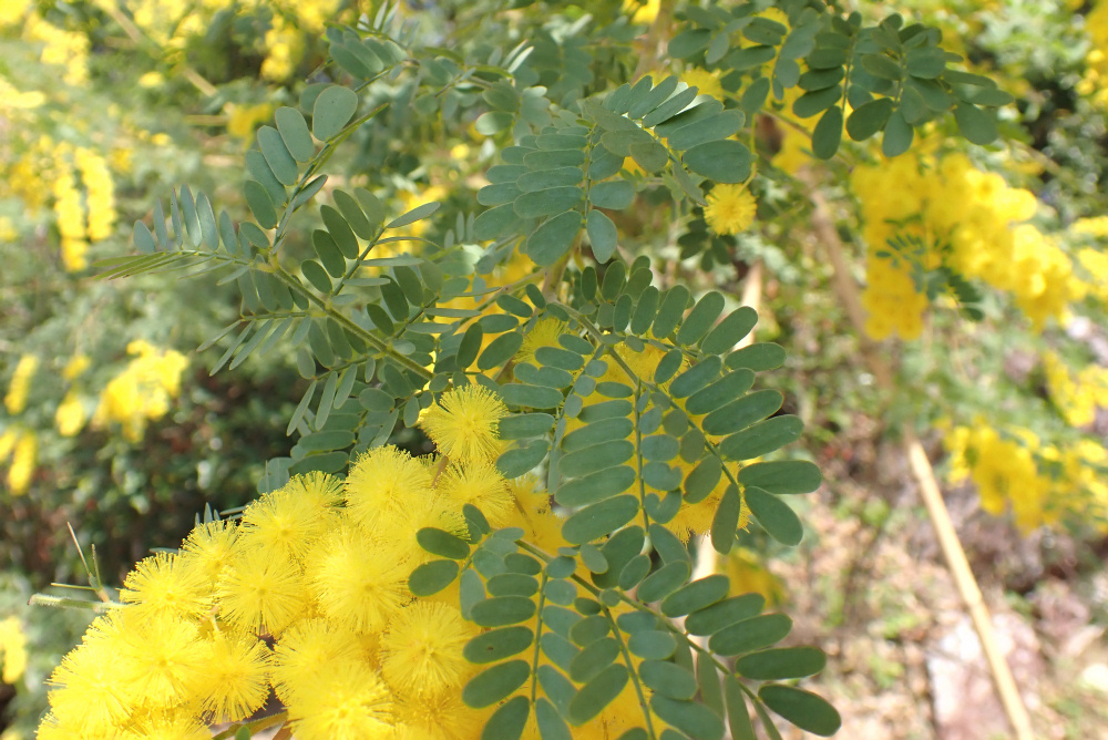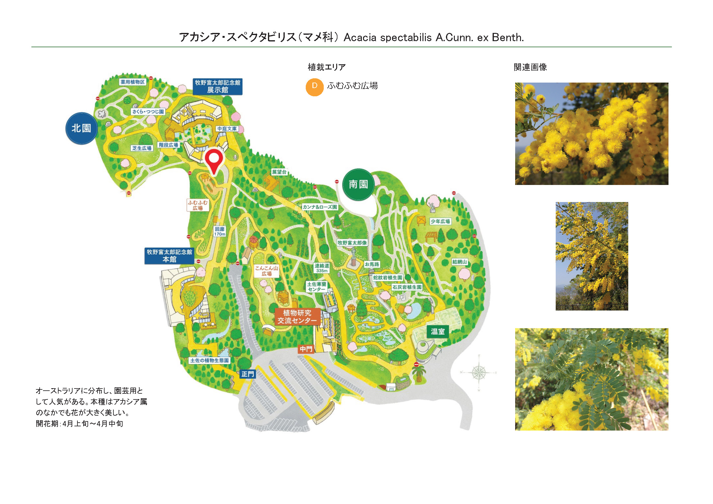 2026-01-15 / 最終更新日 : 2026-01-15 ガイドチーム アカシア・スペクタビリス(マメ科) 球形の花が房状につく 本種はアカシア属のなかでも花が大きく美しい 羽状複葉 基部を中心に飛び出した多数の雄しべと雌しべからなる小花が球体を形づくる 球形の花が房状につく 種名アカシア・スペクタビリス 科名マメ科 別名- 学名Acacia spectabilis A.Cunn. ex Benth. 摘要 オーストラリアに分布し、園芸用として人気がある。本種はアカシア属のなかでも花が大きく美しい。 さらに詳しく① さらに詳しく② 植栽エリア Dふむふむ広場 開花期 4月上旬〜4月中旬 見ごろ 博士ゆかり 植物図 園内で見られる同じ科の植物 アムヘルスティア・ノビリス イヌハギ ウンナンハギ エビスグサ オオベニゴウカン オジギソウ カワラケツメイ クララ さらに表示
