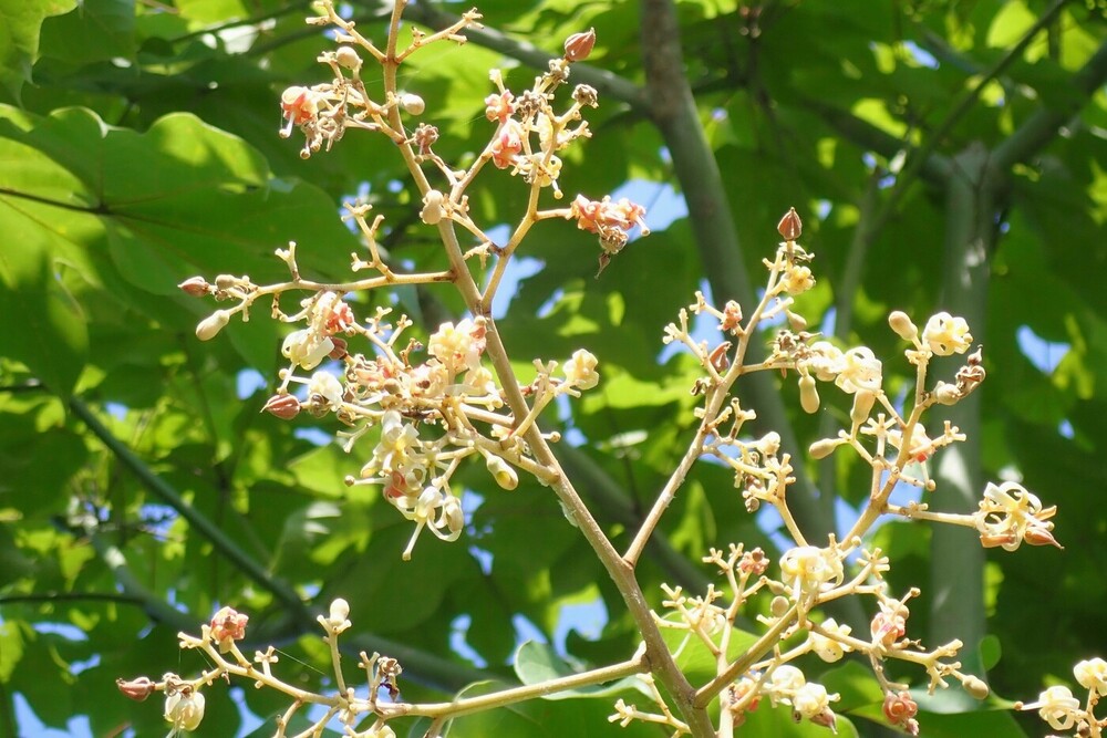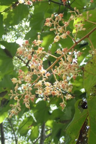 2024-08-30 / 最終更新日 : 2025-11-07 広報課 アオギリ(アオイ科) 花序(1個の花序に雄花と雌花が混じる) 花とつぼみ 花とつぼみ 舟状の袋果(たいか) 和名の由来となった緑色の樹皮 花序(1個の花序に雄花と雌花が混じる) 種名アオギリ 科名アオイ科 別名ケナシアオギリ 学名Firmiana simplex (L.) W.F.Wight 摘要 本州(伊豆半島・紀伊半島)・愛媛県・高知県・九州(大隅半島)・琉球、台湾、中国大陸に分布。海岸林や2次林などに生える落葉高木。和名は葉がキリに似ていて、幹の皮が緑色であることから。 さらに詳しく① さらに詳しく② 植栽エリア A土佐の植物生態園 開花期 7月上旬〜7月上旬 見ごろ 博士ゆかり 植物図 同じ科名の園内植物 ウスベニタチアオイ カカオ カラスノゴマ サキシマフヨウ ザーバオバブ シナノキ スイフヨウ ハマボウ さらに表示