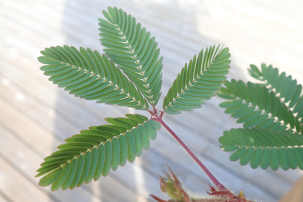 2024-08-31 / 最終更新日 : 2025-10-24 広報課 オジギソウ(マメ科) 4本の雄しべが突き出た紅紫色の花を球状につける 茎に棘(とげ)をつける 葉 閉じた葉 4本の雄しべが突き出た紅紫色の花を球状につける 種名オジギソウ 科名マメ科 別名ネムリグサ 学名Mimosa pudica L. 摘要 ブラジルを中心とする熱帯アメリカ原産で、日本には江戸時代末期(幕末)ごろ渡来。触れると葉を閉じることからこの名がついた。夜になると全ての葉を閉じる。 さらに詳しく① さらに詳しく② 植栽エリア Dふむふむ広場 開花期 8月下旬〜9月上旬 見ごろ 博士ゆかり 植物図 同じ科名の園内植物 アムヘルスティア・ノビリス イヌハギ ウンナンハギ エビスグサ オオベニゴウカン カワラケツメイ クララ ゲンゲ さらに表示