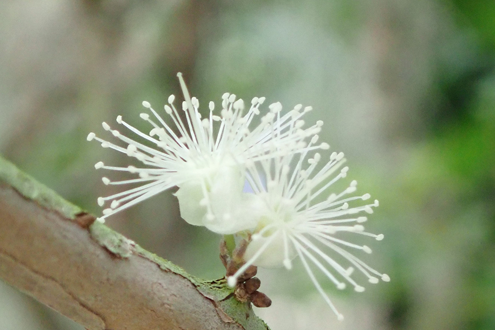 2024-09-03 / 最終更新日 : 2026-03-12 広報課 ジャボチカバ(フトモモ科) 樹高が10mほどにもなる常緑高木 幹から直接白い花が咲く 径3cmほどの果実は食用となる 樹高が10mほどにもなる常緑高木 種名ジャボチカバ 科名フトモモ科 別名キブドウ (Hashimoto 1996) 学名Plinia cauliflora (Mart.) Kausel 摘要 ブラジル南部原産。樹高が10mほどにもなる常緑高木で、幹から直接白い花が咲き、径3cmほどの果実となる。果実は食用となり、生食または日持ちがしないので、ジャムやゼリーなどに加工される。 さらに詳しく① さらに詳しく② 植栽エリア K温室 開花期 5月中旬〜5月下旬 見ごろ ○ 博士ゆかり 植物図 園内で見られる同じ科の植物 アデク ギンバイカ フェイジョア マキバブラシノキ マレーフトモモ ミズレンブ