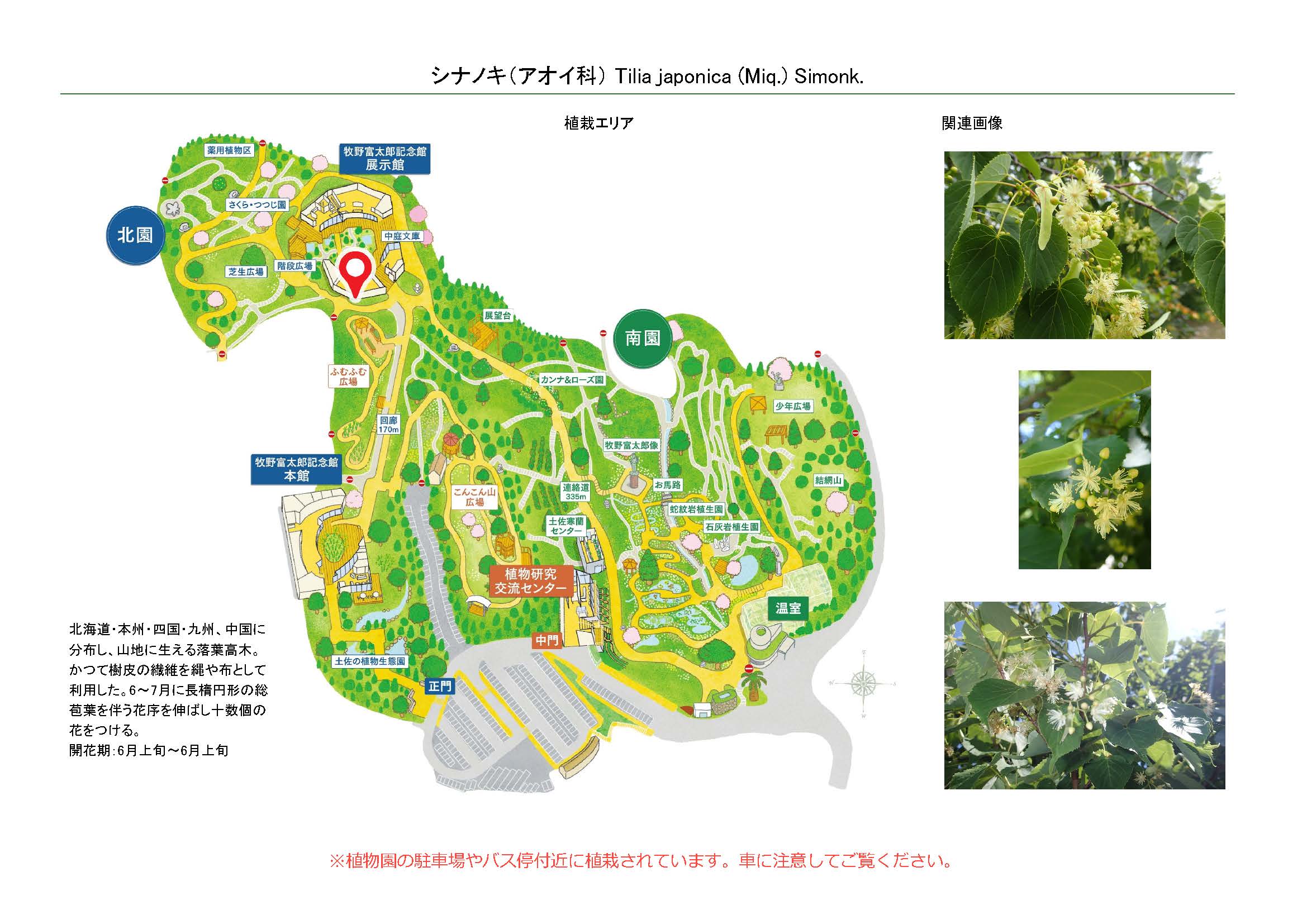 2025-01-20 / 最終更新日 : 2025-09-19 牧野植物園広報課管理 シナノキ(アオイ科) 種名シナノキ 科名アオイ科 別名サドシナノキ 学名Tilia japonica (Miq.) Simonk. 摘要 北海道・本州・四国・九州、中国に分布し、山地に生える落葉高木。かつて樹皮の繊維を縄や布として利用した。6~7月に長楕円形の総苞葉を伴う花序を伸ばし十数個の花をつける。 さらに詳しく① さらに詳しく② 植栽エリア E展示館 中庭/周辺 開花期 6月上旬〜6月上旬 見ごろ 博士ゆかり 植物図 同じ科名の園内植物 アオギリ ウスベニタチアオイ カカオ カラスノゴマ サキシマフヨウ ザーバオバブ スイフヨウ ハマボウ さらに表示