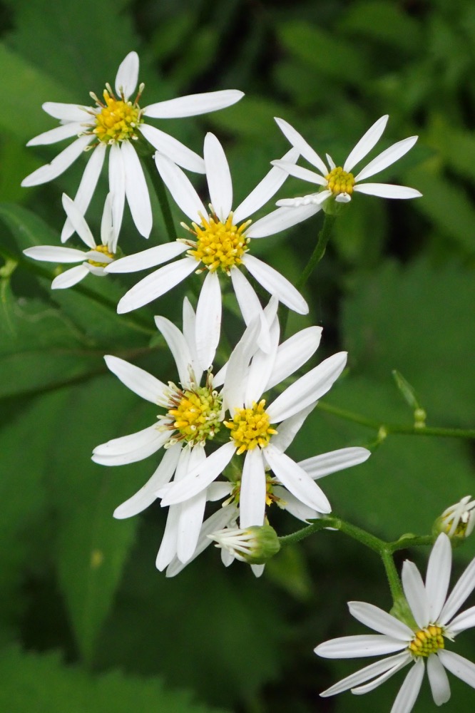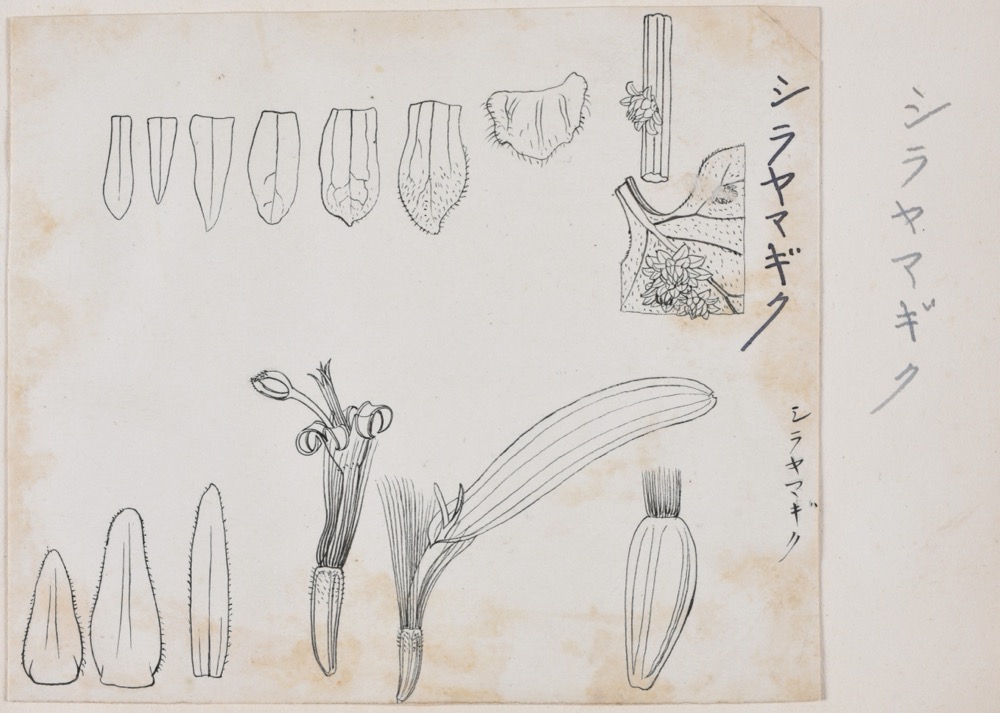 摘要 北海道~九州、朝鮮、中国、ウスリー・アムールに分布する多年草。山地の乾いた草地や林縁に生える。葉は心形で、葉柄にしばしば狭い翼がある。頭花はゆるい散房状に多数つく。舌状花は白色でまばらにつく。そう果は円筒形で約3.5mmの冠毛が多数ある。