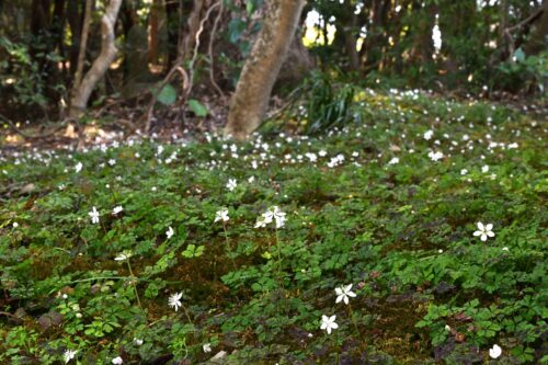 またバイカオウレンはほかにも土佐の植物生態園で咲き始めました。そこでは足元に咲いていますので間近に花をご覧いただけます。