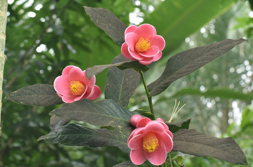 カイドウツバキなどが見ごろを迎えています。温室内は、2月8日(土)より開催される「ラン展」に向けて、少しずつラン科植物の展示も増え、独特のかぐわしい香りが漂ってきました。ぜひ温室で温まりながら、華やかな空間をお楽しみください。