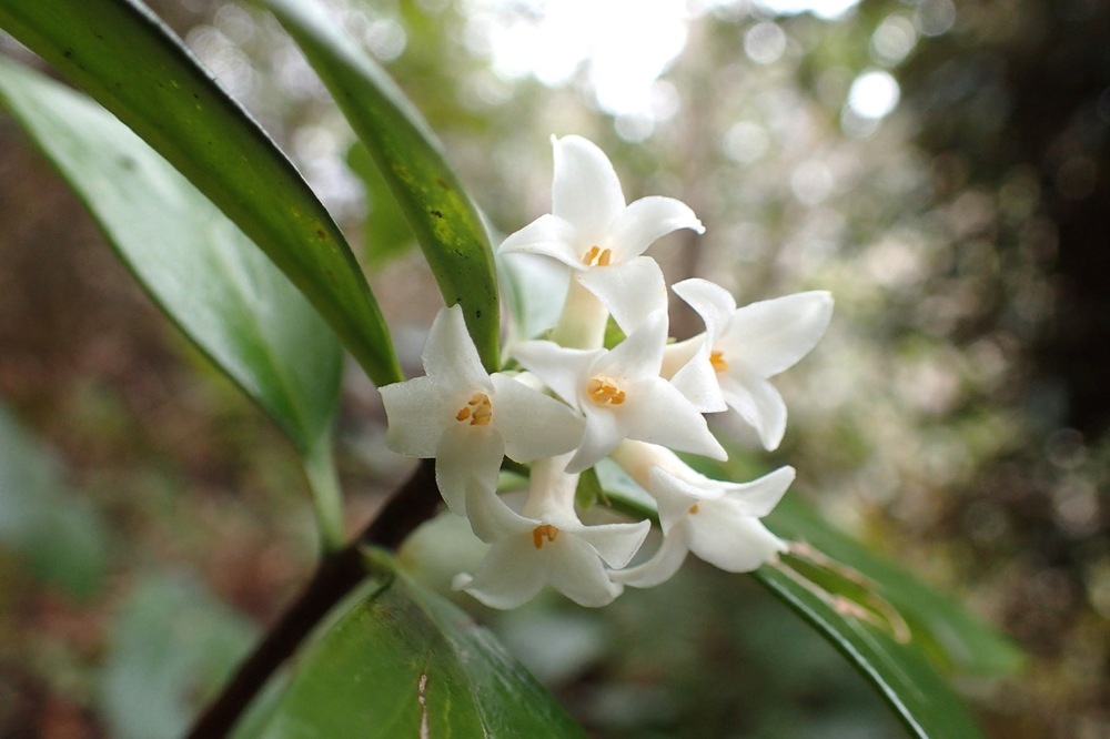 コショウノキの花が咲き始めました。白くて小さいコショウノキの花も同様に芳醇で清々しい香りがあります。木道よりやや離れた斜面で咲いているので実際に香りをかぐのは難しいかもしれませんが、花を咲かせる可憐なすがたをぜひご覧ください。