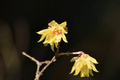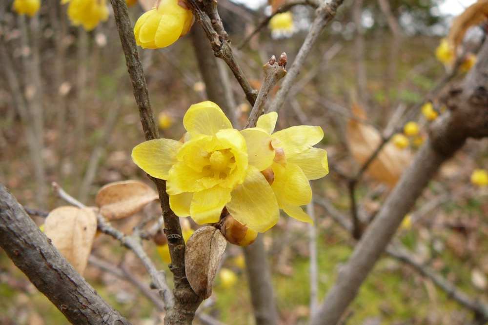 ロウバイに対し、ソシンロウバイは花全体が黄色であることが特徴です。ロウバイは展示館周辺のソシンロウバイのすぐそばにあるので、それぞれの花のちがいや香りをお楽しみください。