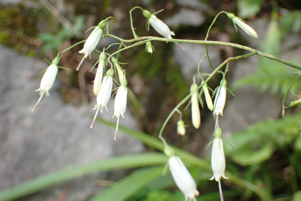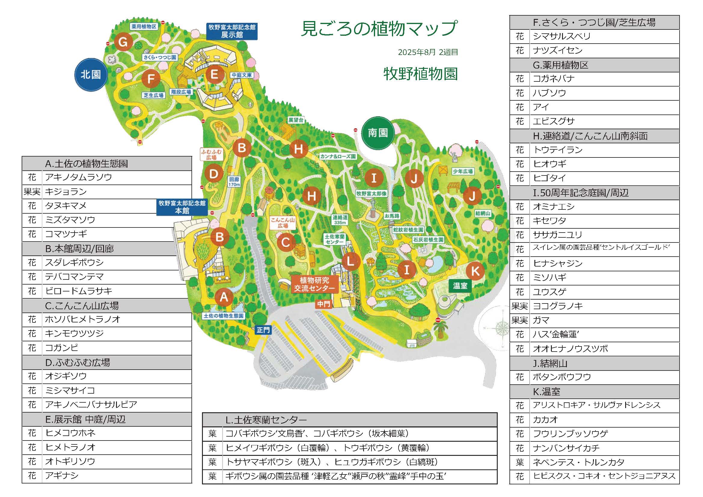8/8現在、南園の石灰岩植生園にて見ごろとなっています。高知県と愛媛県の石灰岩地にのみ分布し、岩場や疎林地に生えます。もともと分布が限られる稀少な植物ですが、自生環境の変化や園芸目的による盗掘などによって個体数が減少し、環境省レッドリスト(2020)では絶滅危惧Ⅱ類(VU)に、高知県レッドデータブック(2022)では絶滅危惧IB類(EN)にそれぞれ指定されています。