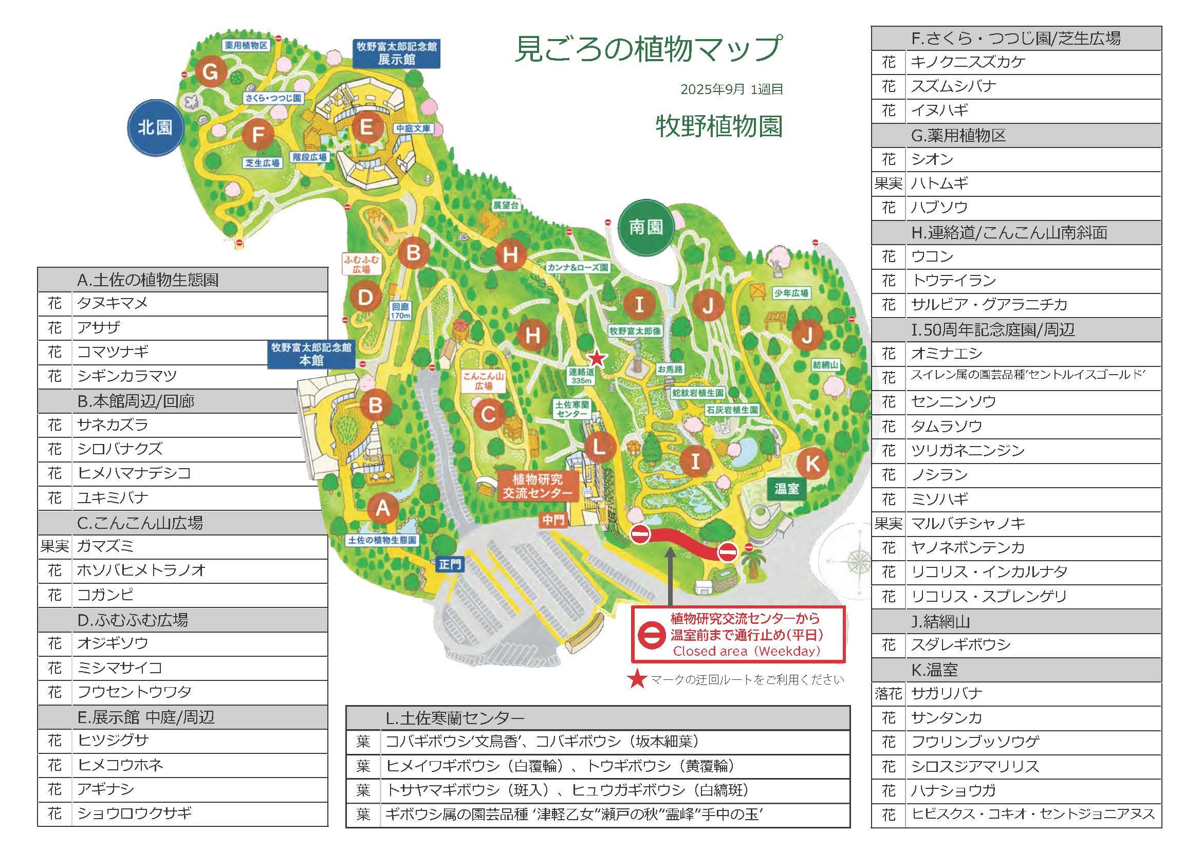 マークの植物名をクリックすると植栽場所や詳しい説明がご覧いただけます。