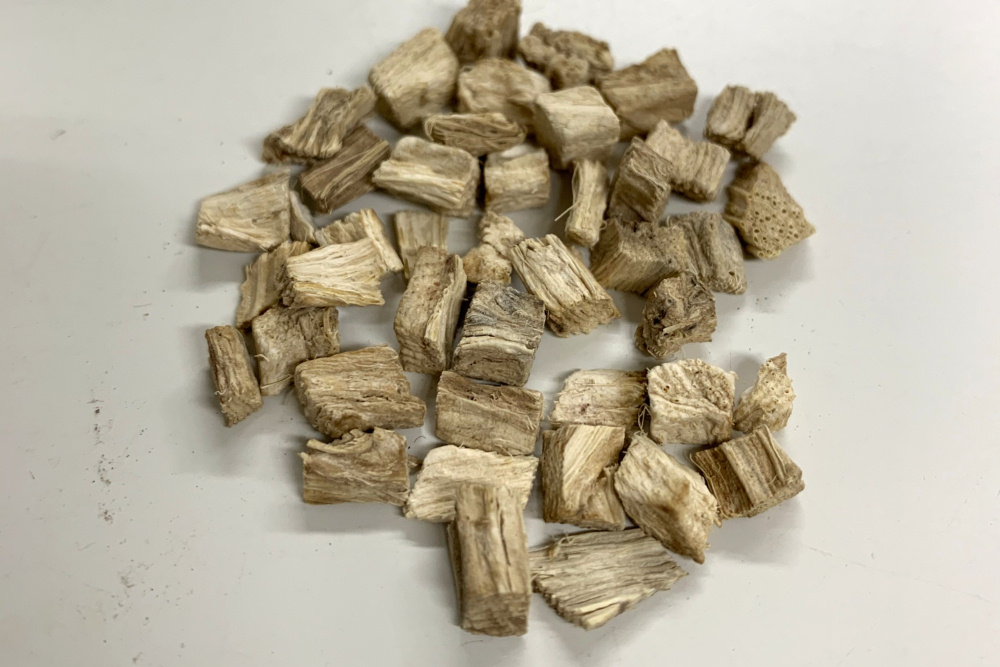 その旺盛な成長から土地の保全や緑化を見込んでアメリカに導入されたものは、その後爆発的に増殖してしまい大きな環境問題となっています。その一方で、本種は食用にも薬用にも、さらには工芸品にもなる、有用植物でもあります。根は肥大してデンプンをため込み、それを取り出したものが葛粉(くずこ)で、葛切りや葛餅、葛湯などにして食されるほか、根を刻み乾燥させたものを葛根(かっこん)とよび、風邪の引きはじめに飲む葛根湯(かっこんとう)などの漢方薬に配合されています。私が以前居た静岡県掛川市では繊維を使った葛布(くずふ、かっぷ)とそれを用いた工芸品が有名です。薬用植物区に行くと基本種のクズが赤紫色の花を咲かせていますので、併せて足を運んでみてはいかがでしょうか。