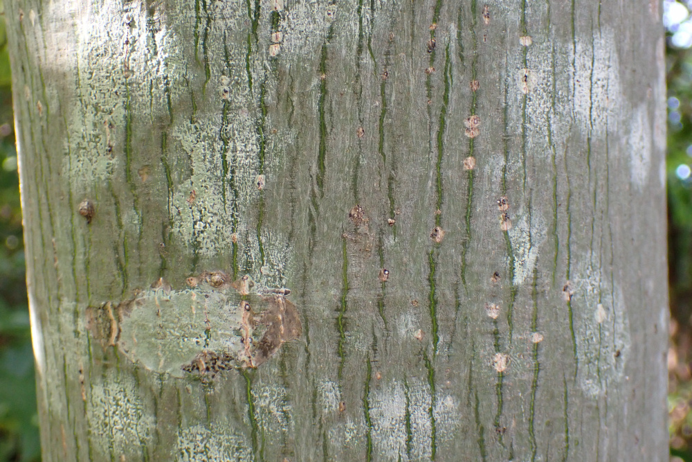 樹皮は緑色を呈し、雨などで濡れるとさらに発色する。