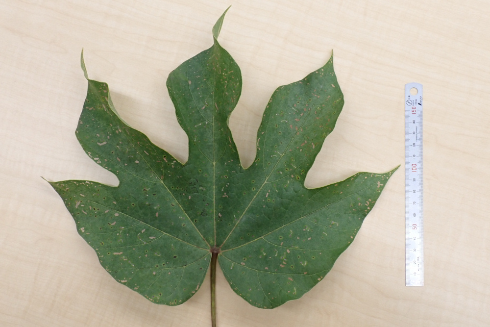 葉は大きく掌状で3~5裂する。