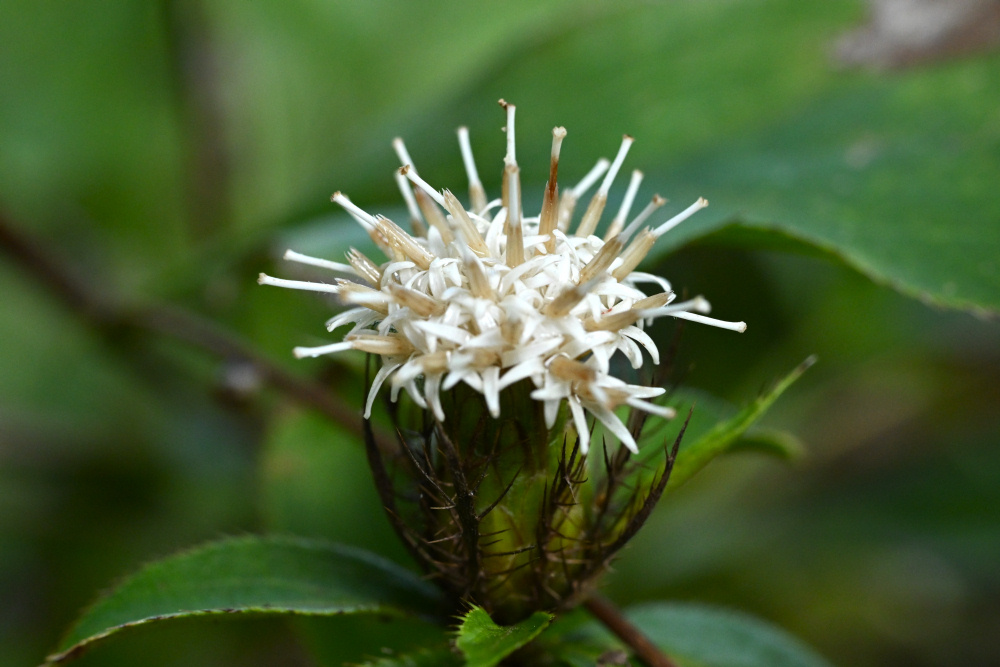 頭花を包むように、魚の骨のような総苞がある。