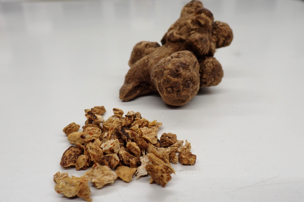 根茎を乾燥させたものは白朮(びゃくじゅつ)と呼ばれ、四君子湯や薏苡仁湯などの漢方薬に配合される。
