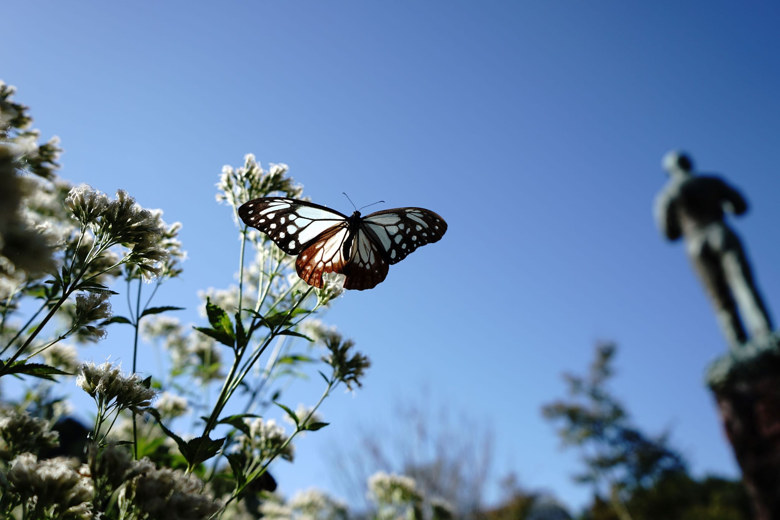 アサギマダラの成虫。幼虫は本種を食べて育つ。