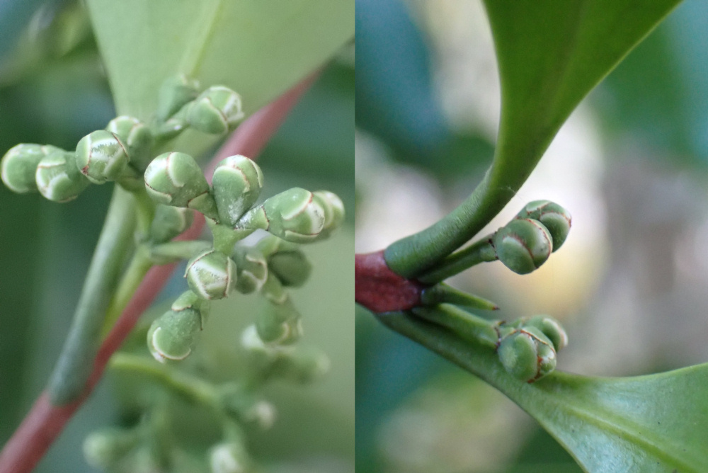 モクレイシの蕾。左:雄花、右:雌花