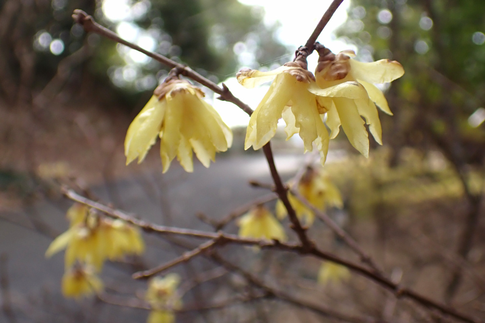展示館の外縁に植栽されています。1/15現在、蝋細工のような透明感のある黄色の花を次々に咲かせており、あたりには清々しい香りが漂っています。原産地は中国で、後水尾天皇(在位1611-1629)の時代に朝鮮半島から渡来したとされています。花は美しく、観賞用に庭などに植えられ、花材としても利用されます。南園の連絡道には、花の内側が暗紫色にならない、ソシンロウバイも同様に見ごろですのでぜひ見比べてみてください。