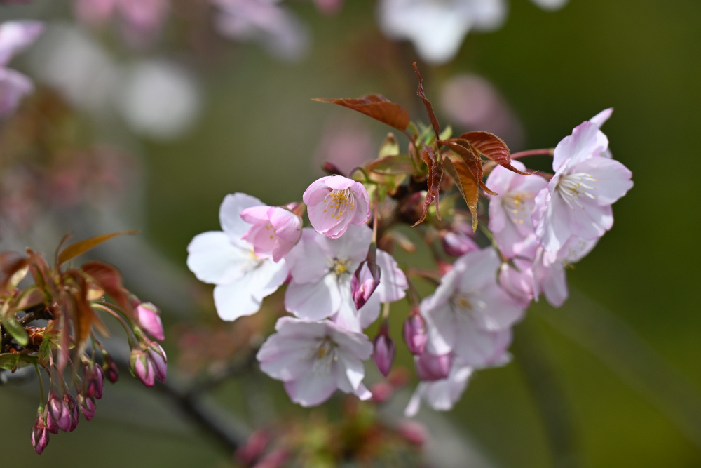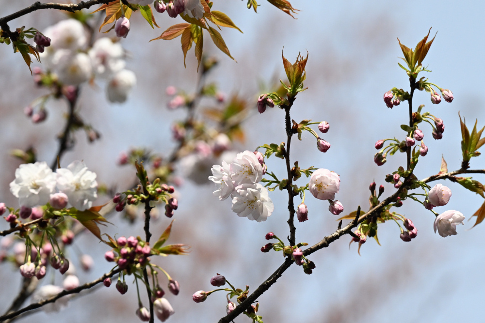 夜間開園イベント「桜の宵」を週末に控え、園内ではさまざまな種類の桜が花を咲かせています。