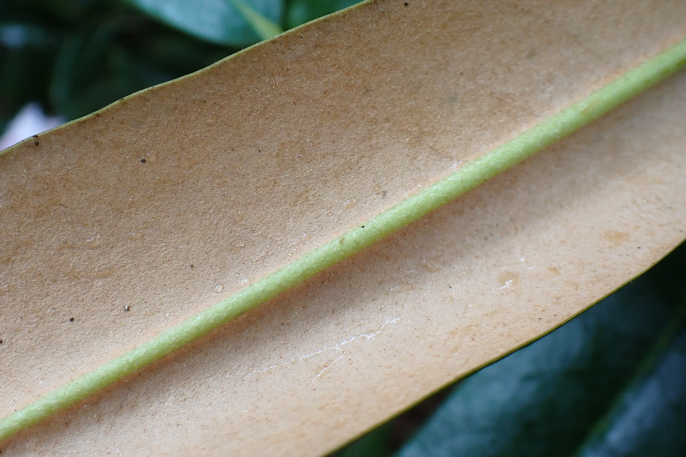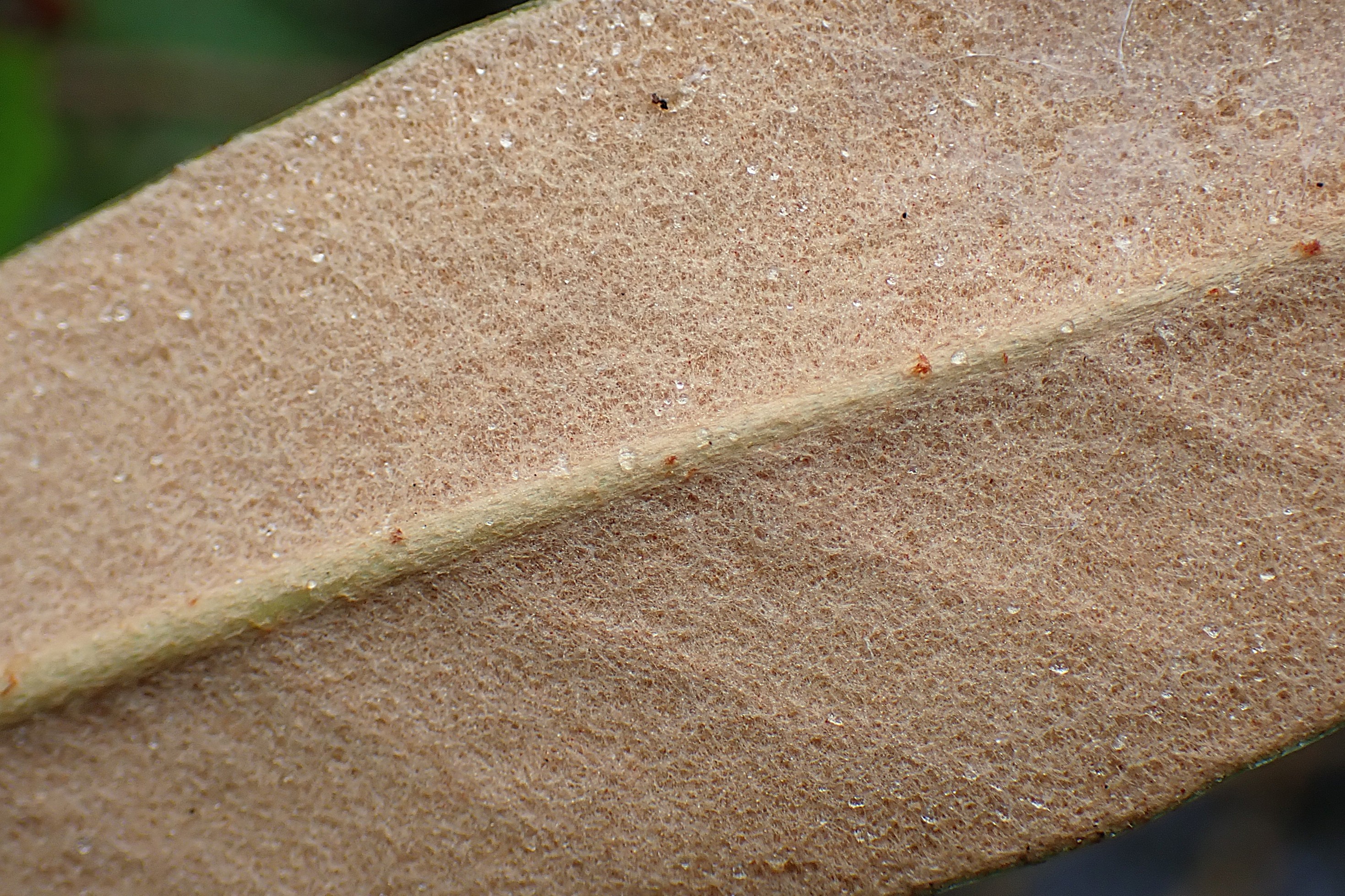 葉の裏には赤褐色のビロード状の毛を密生させる