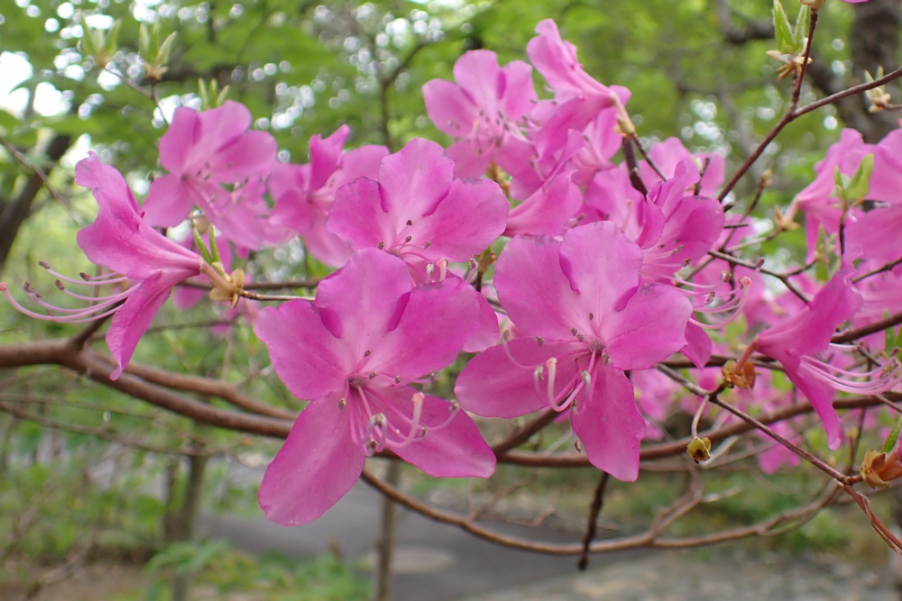 桜の仲間はサトザクラが中心となり、いよいよ終盤です。園内では、園内各所でツツジ属の花が見ごろをむかえていて、その中から数種をピックアップしてご紹介します。