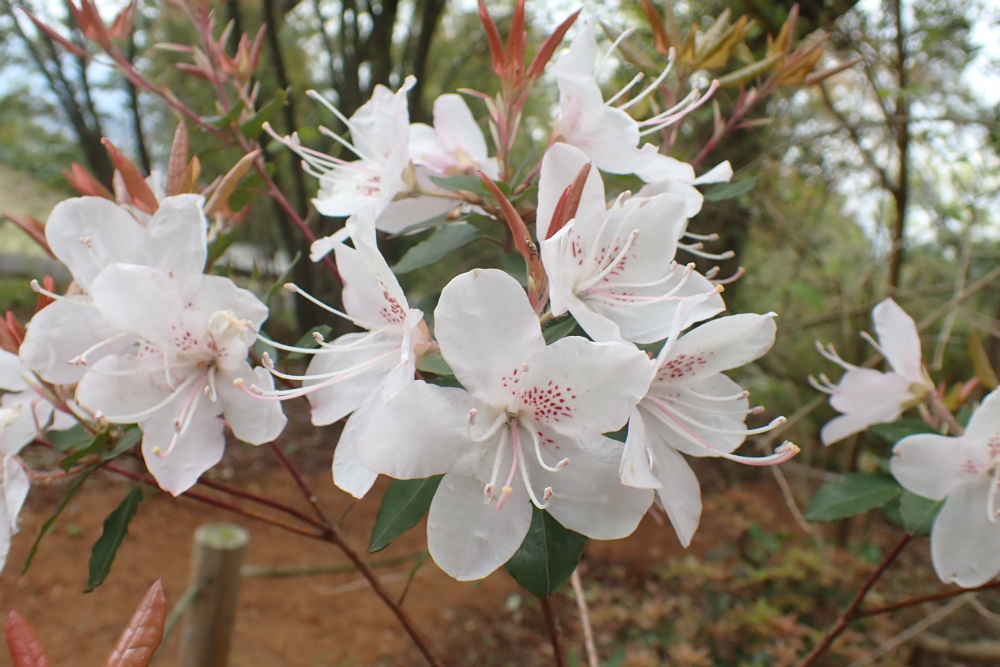 当園は2012年と2013年の秋、台湾行政院林業試験所と新潟県立植物園のご協力を得て、台湾のツツジ属植物の種子採集と調査を行い、台湾に分布するツツジ属植物19種のうち、採集地が明確な17種(固有種11種)の種子と証拠標本を得ることができました。こんこん山広場には、種子から育てた台湾産ツツジ属植物の貴重なコレクションがあり、今回紹介するランダイヒカゲツツジもそのなかのひとつ。