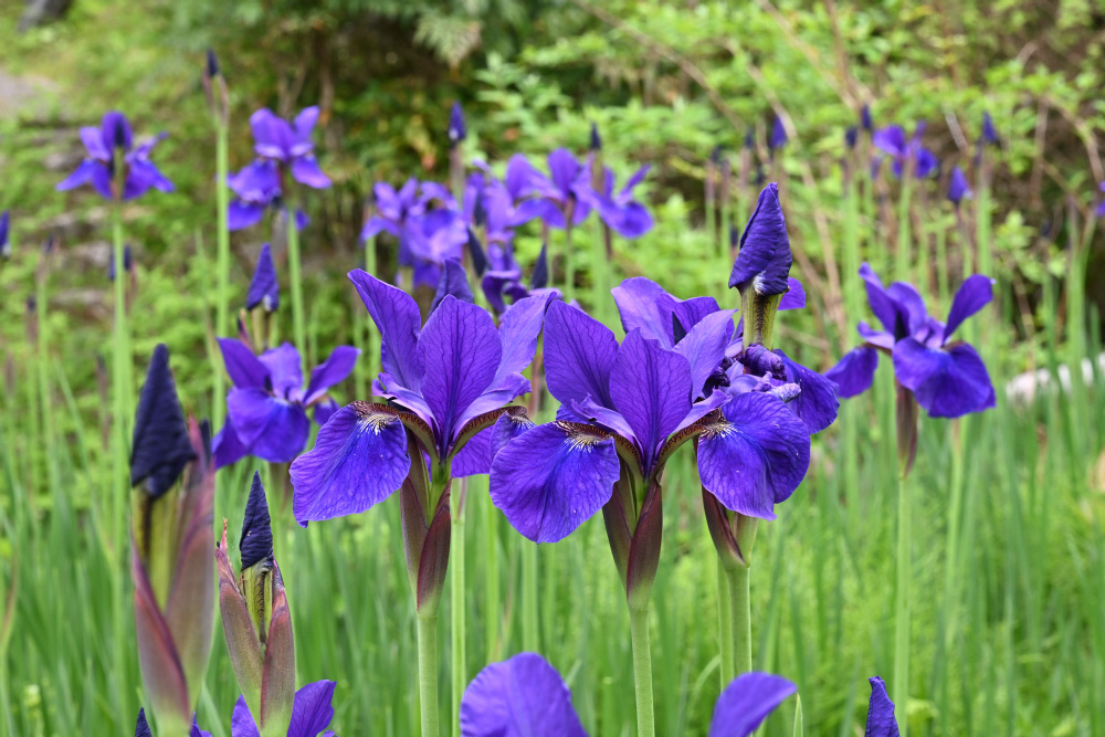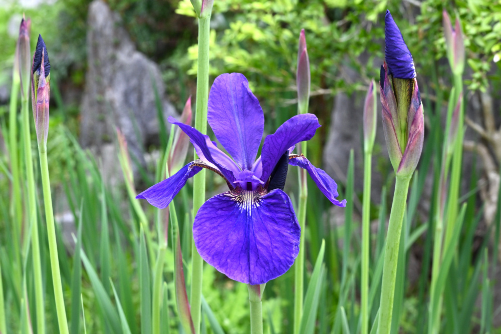 4/17現在、南園と展示館中庭の2か所で見ごろとなっています。朝鮮、中国東北部に分布する多年草で、観賞目的で古くから我が国で栽培されてきました。花が濃紫色で花茎が長いため切花としても用いられるようです。牧野博士が1929年、「植物研究雑誌」にて学名を発表し、和名の由来を原産地とされる釜山を和読したものだとしていますが、和名の由来については諸説あって定かではありません。