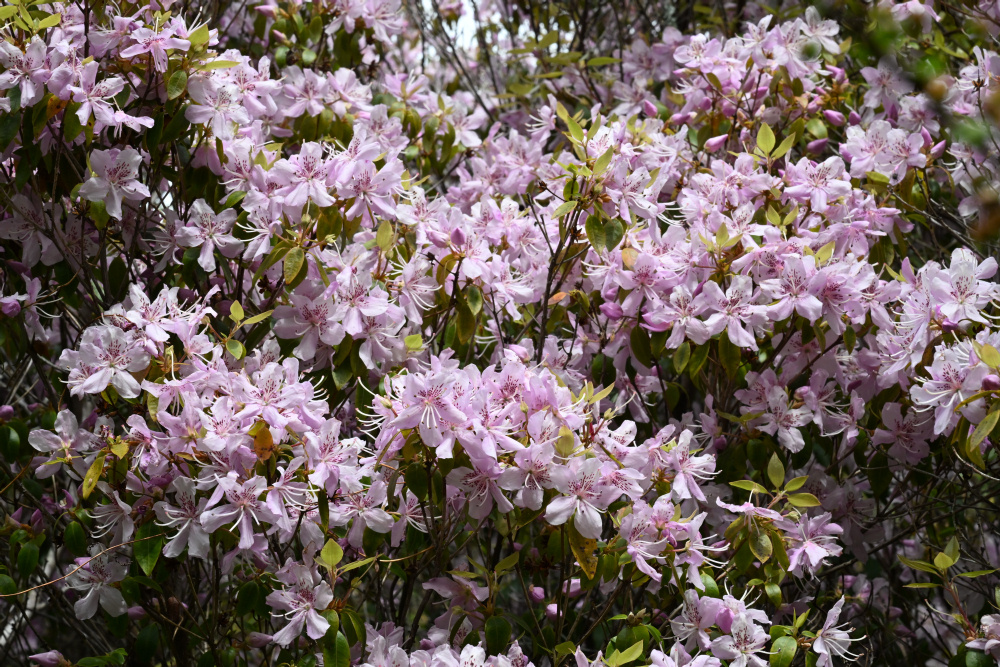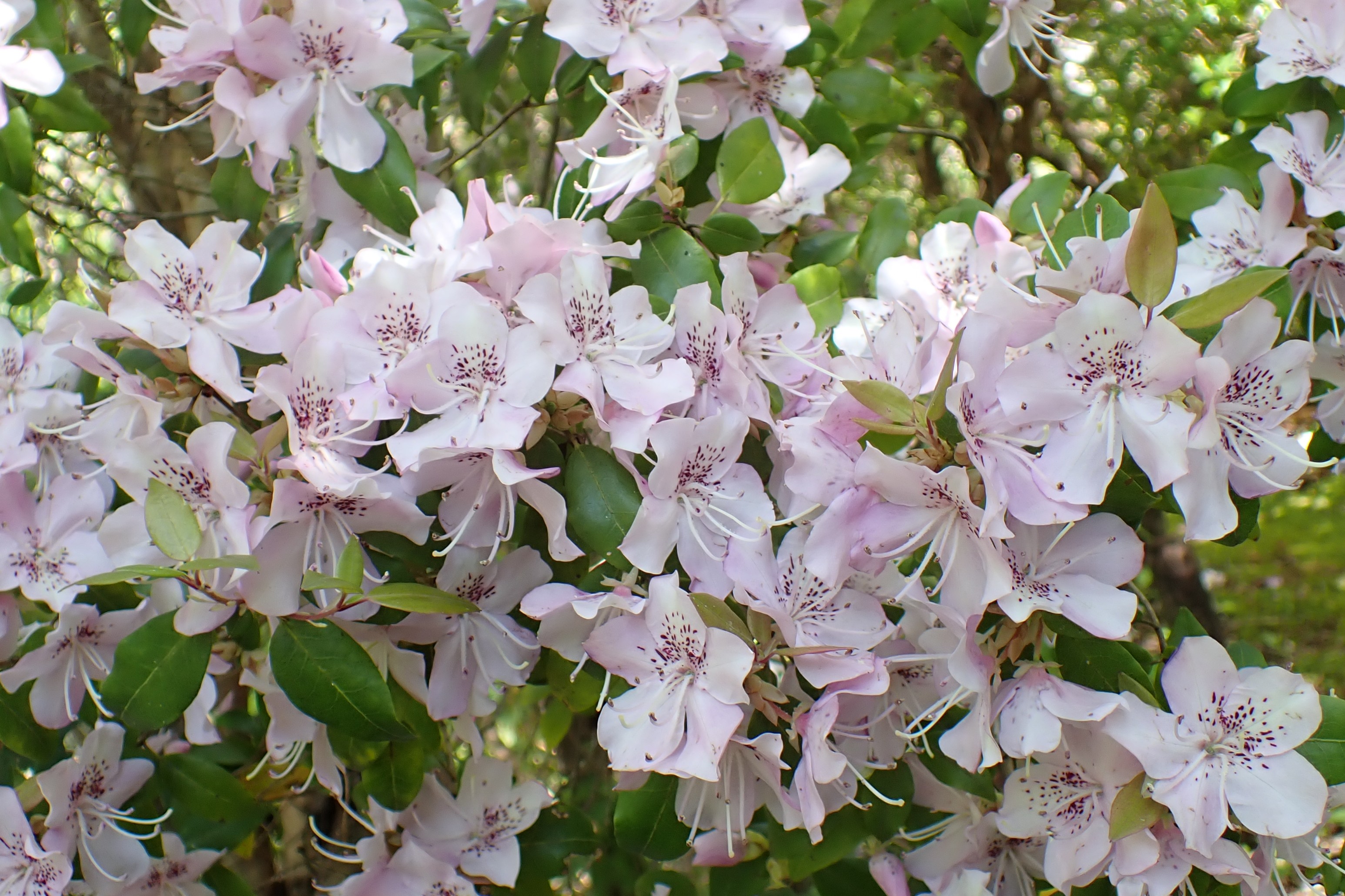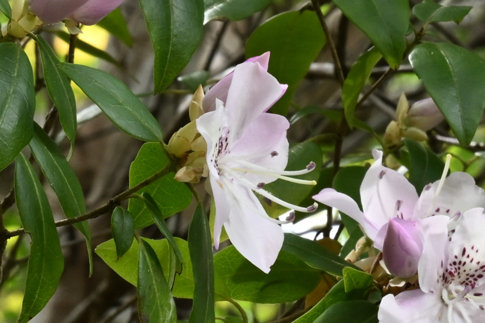 多くの種が漏斗状の花を咲かせるツツジ属にあって、本種は皿状に平開する特異的な花を咲かせます。香りもよく、株に近づくだけで上品な甘い香りに気づくでしょう。