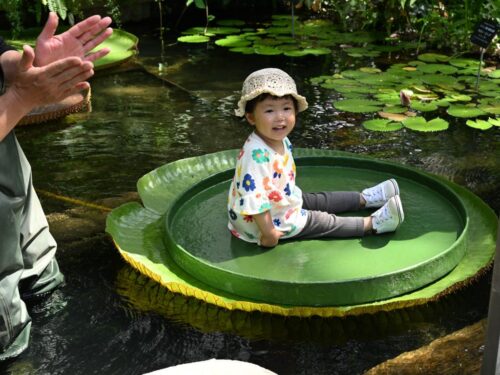 世界最大級!大きな葉のオオオニバスに乗ってみよう。