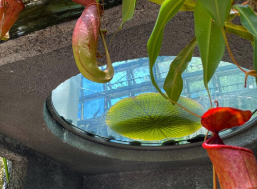 オオオニバスは、成長すると葉の直径が1mを超え、大きいものでは直径2mにもなる世界最大級の水生植物です。